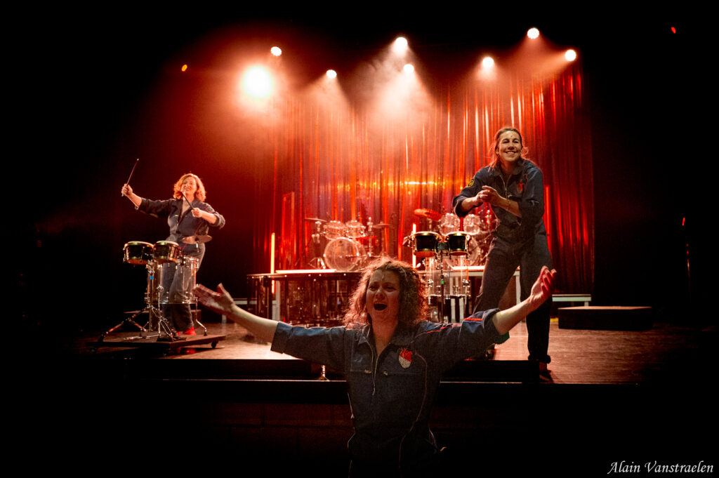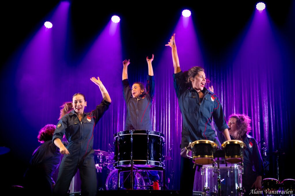 - “Een ‘girls band’ die zware kost brengt”: Paris Match Belgique omschrijft de show als een krachtige mix van percussie op onconventionele materialen zoals olievaten, autobanden en metalen kooien.